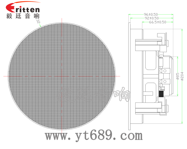 此款6.5寸天花吸頂喇叭,頂級(jí)元件±3dB分頻器,可完美的控制揚(yáng)聲器的中、高、低音,對(duì)角四個(gè)可旋轉(zhuǎn)卡扣柱,用于天花喇叭倒掛方式安裝,方便牢固,頻響寬,失真小,信噪比好。