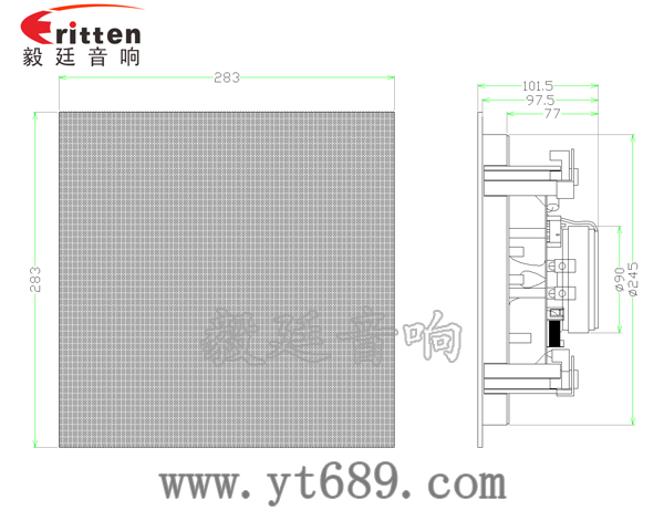 這款天花喇叭的外觀防塵罩,用的是高密度金屬網罩進過環保烤漆工藝,手感平滑,不褪色、不生銹、不氧化、超窄邊有圓形和正方形兩種防塵罩形狀,帶八個超強磁吸鐵,可吸性強,外觀大氣、精美,是毅廷音響工程師精心研發的一款超完美的8寸天花吸頂喇叭。