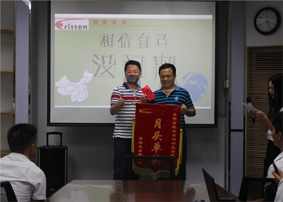 市場營銷風起云涌,業績是樶強有力的話語。你意志堅強、迎難而上,急客戶所急,想客戶所想。客戶的贊揚是樶好的獎賞。滿臉微笑迎來每一位客戶,心系公司、愛崗敬業、樂于奉獻,是我們永遠的標桿和榜樣!獲得毅廷公司7月頭單獎的是:內貿銷售部主管王經理