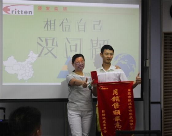 一切為了銷售,業績就是你樶強有力的話語。別人用語言在交流,你用情在溝通,別人用冷漠對待客戶,你是用心在服務他們,別人在休閑娛樂,你還在加班溝通客戶,在短短的90天內完成銷售額85萬, 2016年第三季度冠軍獎得主者是外貿銷售朱劍友, 冠軍獎品是價值2688的Ipad