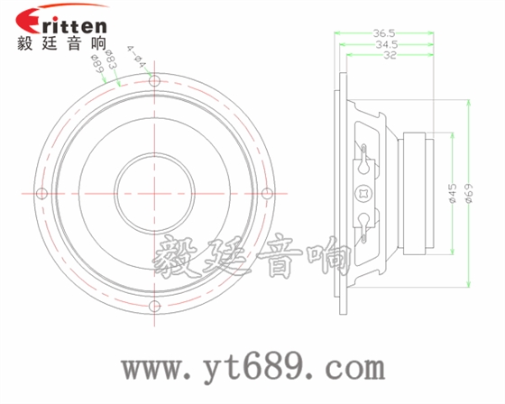 40mm5瓦內磁全頻藍牙音箱喇叭