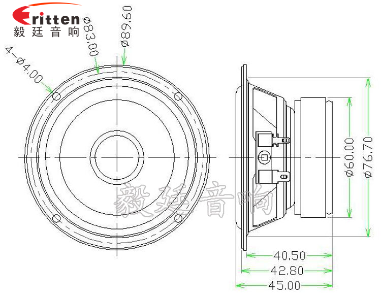 3寸圓形鐵盆架外磁全頻喇叭,采用了性價比高的鑄鐵盆架,是用優質的材料一次成型,散熱性能好,耐沖擊音色清晰、飽滿;