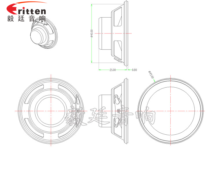 45mm圓形銀色鐵盆架內(nèi)磁全頻喇叭,采用的是鐵磁性極其特別,外觀四孔設(shè)計(jì)使喇叭散熱效果更好;