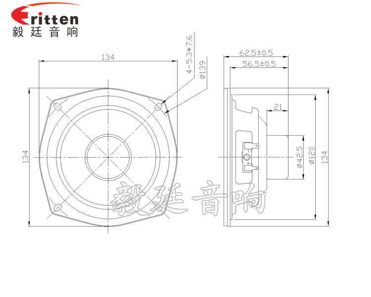 134mm蘋果型鐵盆架內磁全頻喇叭,采用的是釹鐵硼磁鋼,永久不退磁,磁性強,動力足,穩定性好;