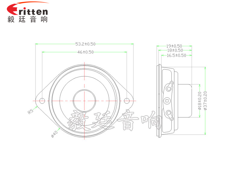 40mm圓形帶耳狀安裝口鐵盆架橡膠邊內磁雙磁全頻喇叭,采用高性能稀土高強磁,音色清晰、飽滿;