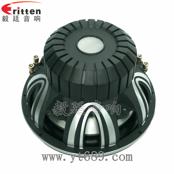12寸圓形重低音喇叭,采用了高純度的鋁盆架,加強(qiáng)加寬壓鑄磨砂,承載著大型磁路和振動系統(tǒng),保證了大功率工作時的穩(wěn)定性;