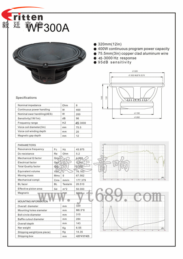 此款廣泛用于PA音箱系列、專業舞臺音響,大功率,低頻震撼,毅廷音響工程師精心研發12寸大功率重低音喇叭,音色清晰;